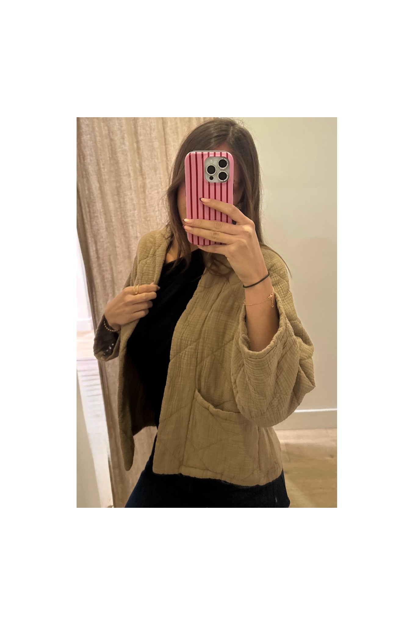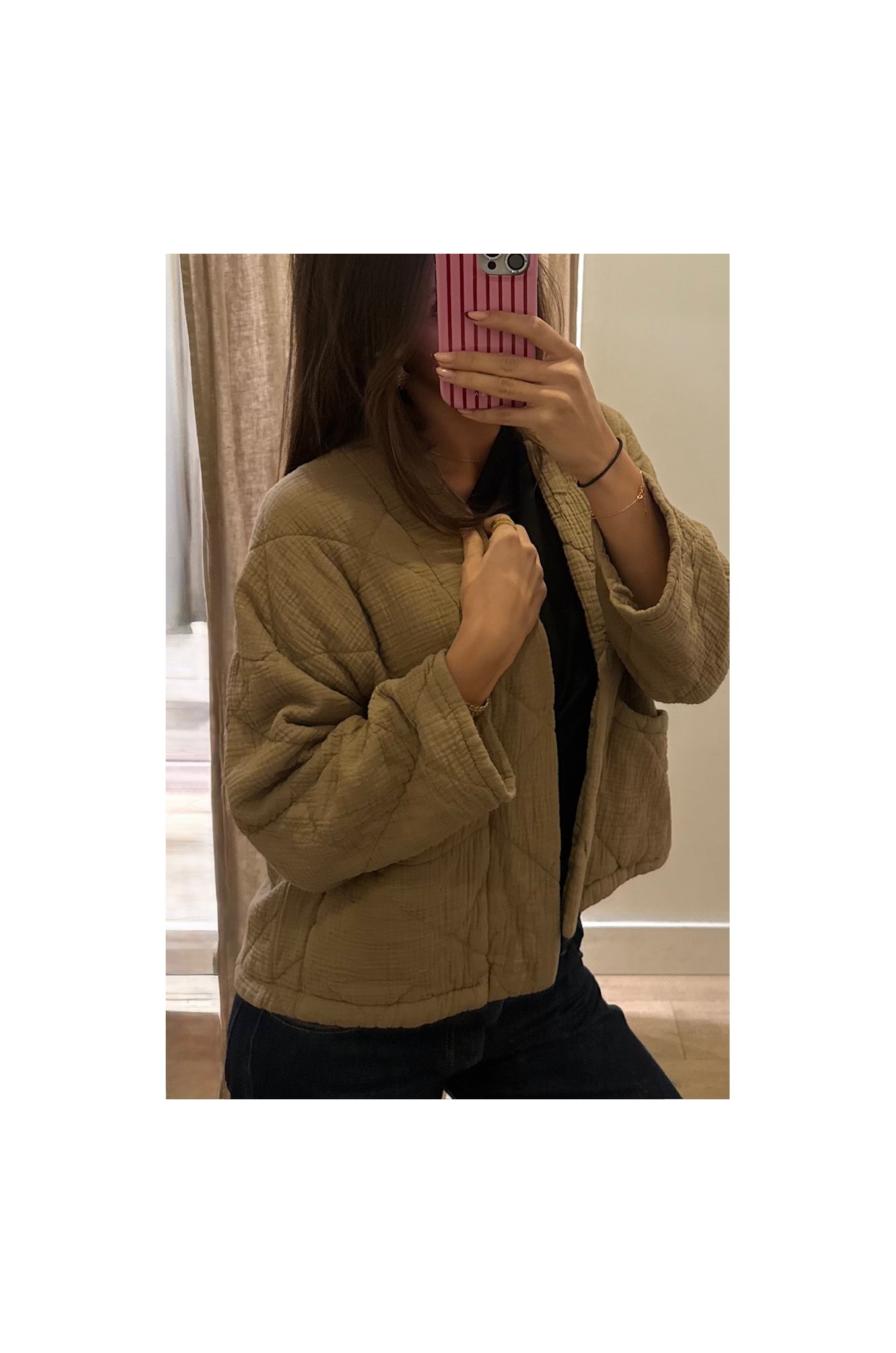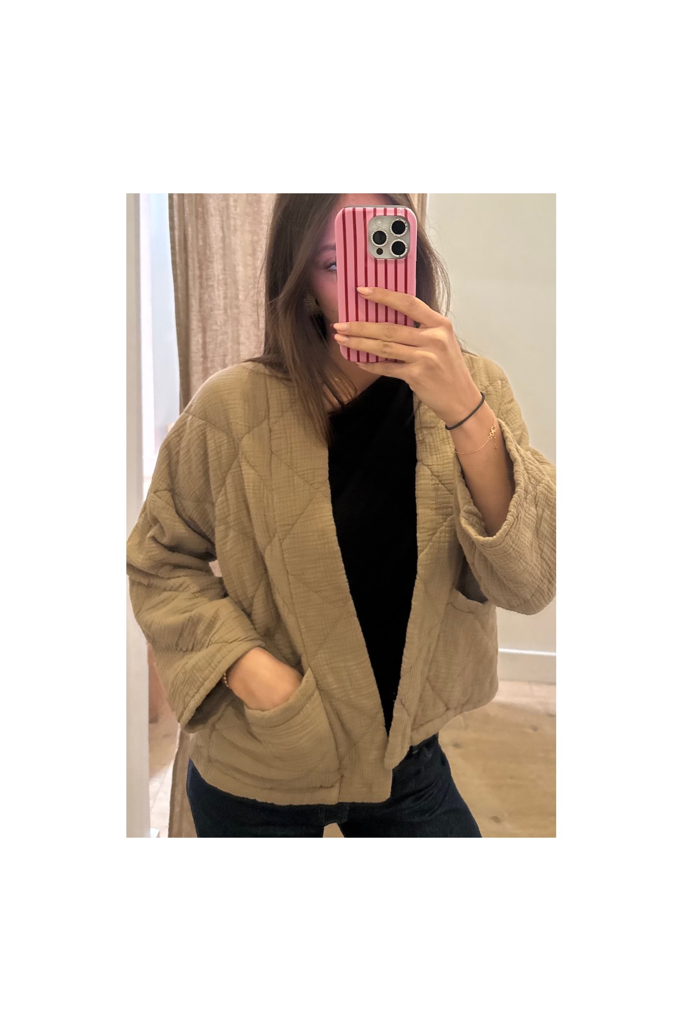 Apportez une touche douce et tendance à votre tenue avec ce kimono court matelassé coloris camel.